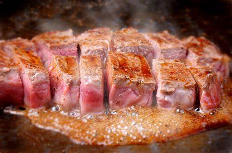 Griglia la carne con il grasso che si scioglie a fuoco alto per un breve periodo di tempo fino a quando la superficie diventa leggermente croccante. Poi tagliala con un coltello e vedrai una bellissima bistecca al sangue. Prova a gustare la bistecca con wasabi fresco: aiuta a esaltare il sapore dei succhi della carne e la dolcezza del grasso mentre si scioglie in bocca.